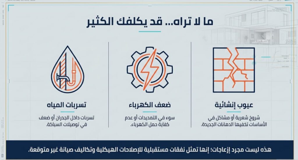 • تجنب المصاريف المفاجئة: توفير آلاف الريالات أو الدراهم التي قد تُصرف على إصلاحات هيكلية بعد الشراء.